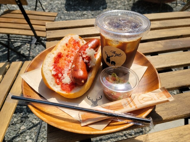 そのお肉をフランクやコロッケ、サラミに加工した販売と、外のテラス席ではホットドッグやコロッケバーガーを食べることが出来る
