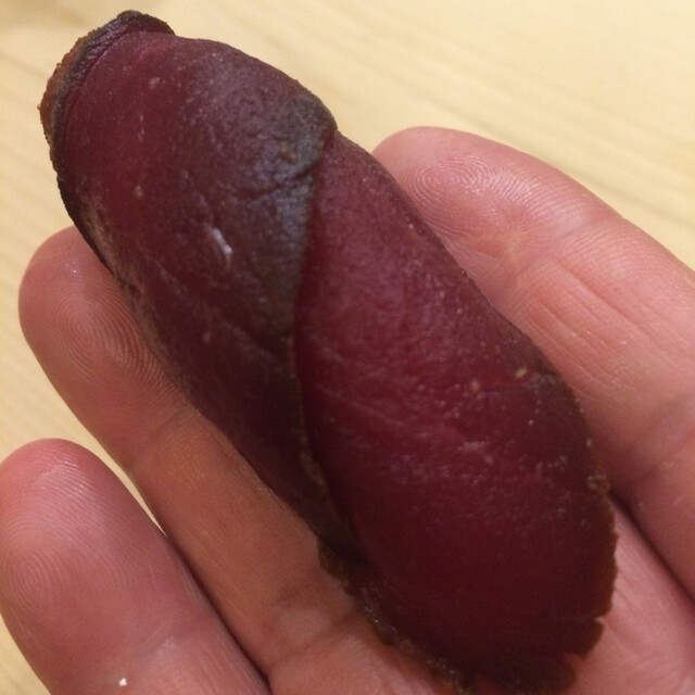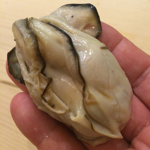 6日熟成した一切れと、今朝採れの一切れの融合で、塩味で食感をも楽しみます。