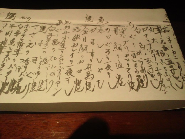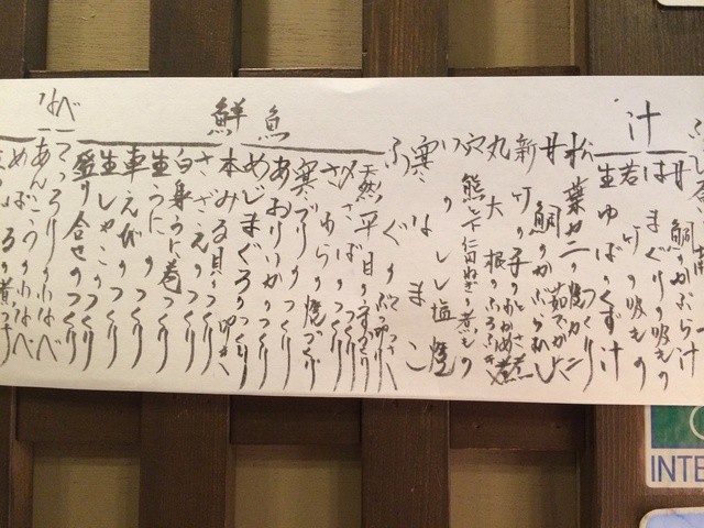 「ふじ原」は、日々変わりゆく旬のメニューが多すぎて?一つ一つの料理に値段は書いてありませんが、