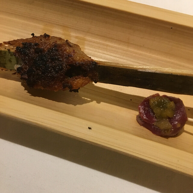 最高に美味しく印象に残ったのが、柔らかくも繊細な舌触りでしなやかな弾力も抜群の野鴨の炭火ロースト?と