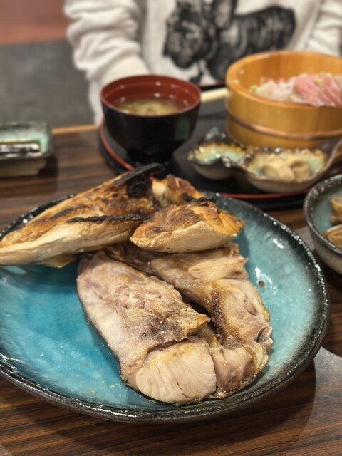 それぞれ海鮮丼を頼んだけどサイドでなめろうや浜焼き、落花生など沢山頼んでお正月のような大宴会に