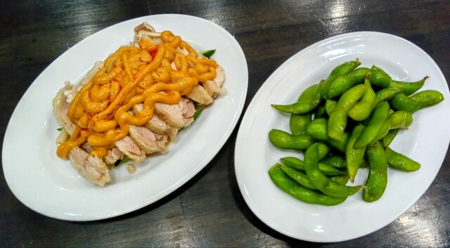 2026/1月。お飲み物セットのバンバンジー&枝豆。