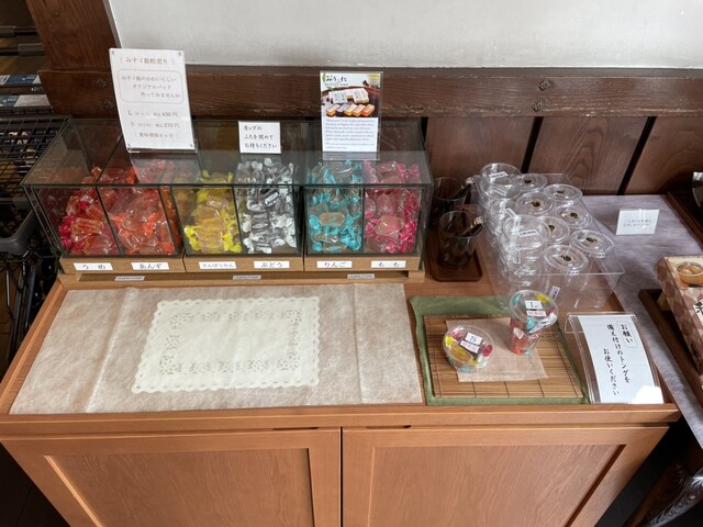 また本店ならではの、みすず飴の粒売りもあり、好きな味だけ買えたり、オリジナルの組み合わせをしておみやげにも出来ます。
