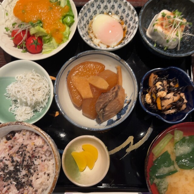和食膳。大根の中まで染み染み。ランチにお赤飯も珍しい