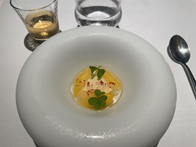 季節のディナーコースとワインのペアリングをいただきました。