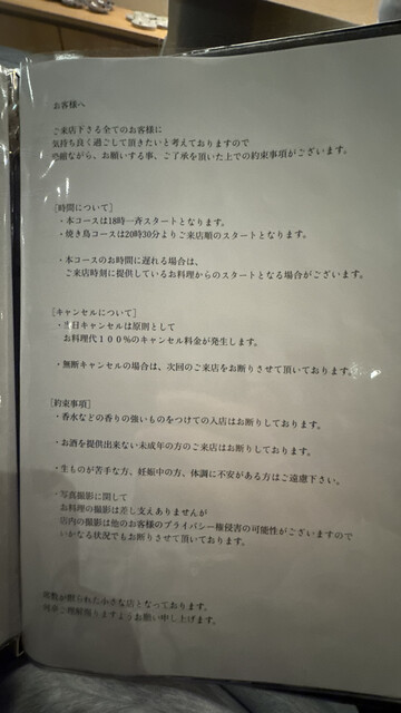 平日の2回転目の焼き鳥コースで1人でカウンターにお伺いしました。