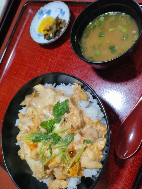 2人で訪問、ちゃぼ定食と親子丼を注文 ちゃぼ定食2つ頼んだらおばちゃんが食べ切れないよと教えてくれたので変更 ちゃぼ定食はきじ重、鳥刺し、鳥竜田揚げ、焼き鳥などなどのコースだった 親子丼はふわっと柔らかい鶏のトロトロ卵出汁も優しく美味しい おばちゃんは気さくでシェアできるように小鉢小皿をあれこれ持ってきてくれる 最後にコーヒーのサービス 目が行き届いていてタイミングよくでてきた 板さんもお腹いっぱいになりましたかと気さくに声をかけてくれる 滞在中テイクアウトの注文がひっきりなしにきていた 楽しく美味しくお腹いっぱいいただきました ごちそうさま