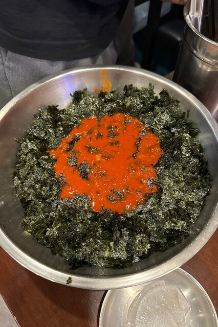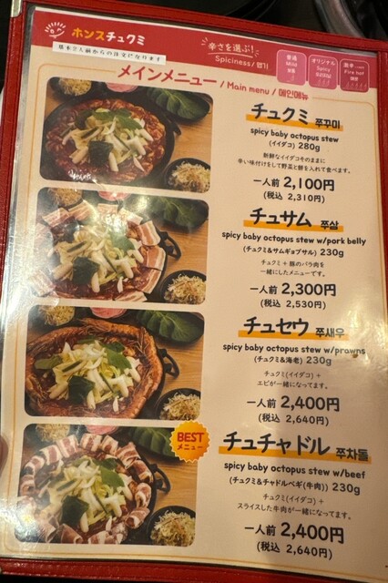 注文はいつも通り、チュクミにサムギョプサル、海老トッピング。締めはとびっこチャーハン。あっさり食べ尽くすので、必ず鍋もチャーハンも人数分を注文必須。1人前の引き算をすると足りない。