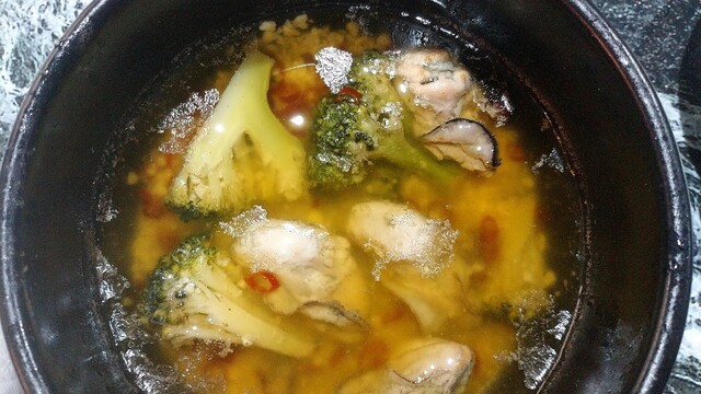 具材は、牡蠣・豚薄切り・竹輪・豆腐・葱などなど 美味いっ!!!