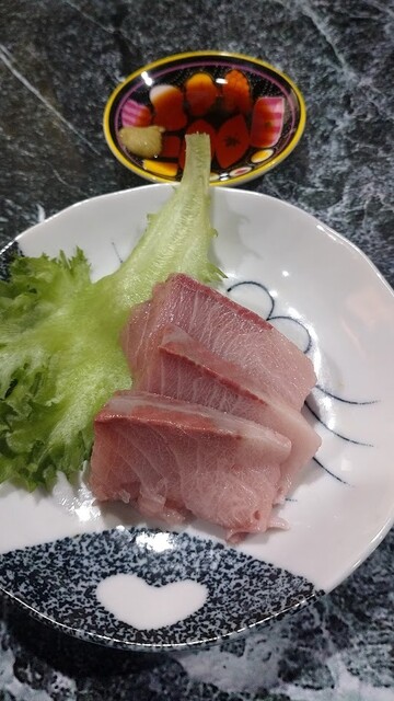 まずは、ハマチの刺身 ぬおっ!!! マジか!? 超、脂が乗ってる!!
