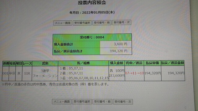 1/5(水) JRA 新年一発目開催!! 京都金杯 GⅢ(中京)で、19万円馬券をゲット!!! ( `ー´)ノ