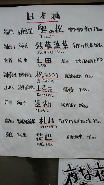 日本酒は 「中島屋」山口 「白菊」石川 を追加