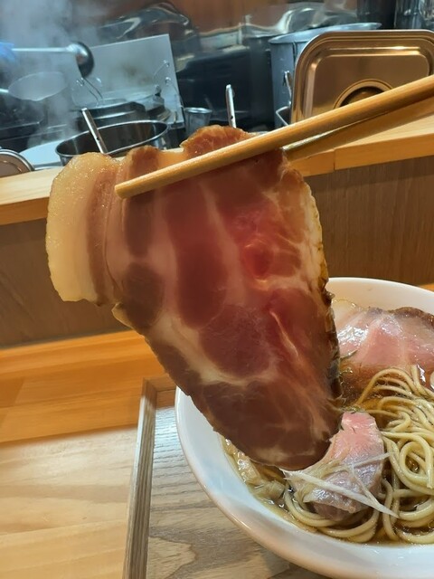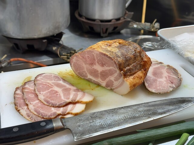 硬い肉質なんでね 当然、薄く切ってる 何故この部分をチャーシューにしたのか?