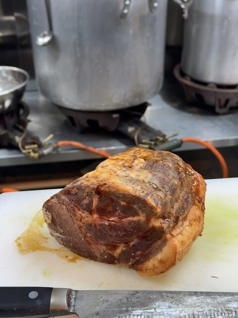 チャーシューを切り出した 「随分大きいリブロースだねぇ」「あっ、シキンボです」「へ??」