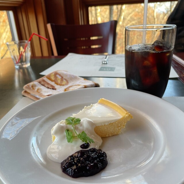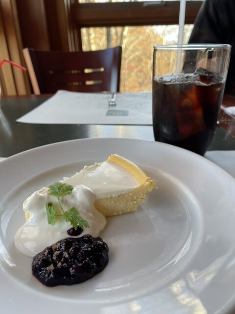 そしてデザートにはチーズケーキとたっぷりのアイスコーヒー。