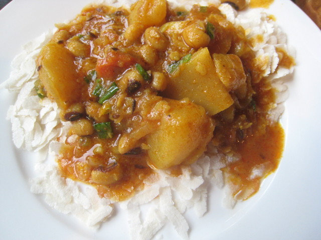 小さいバラ、黒大豆、ゆで卵、柔らかい豆、スパイシーラム、チウラ、サグ、