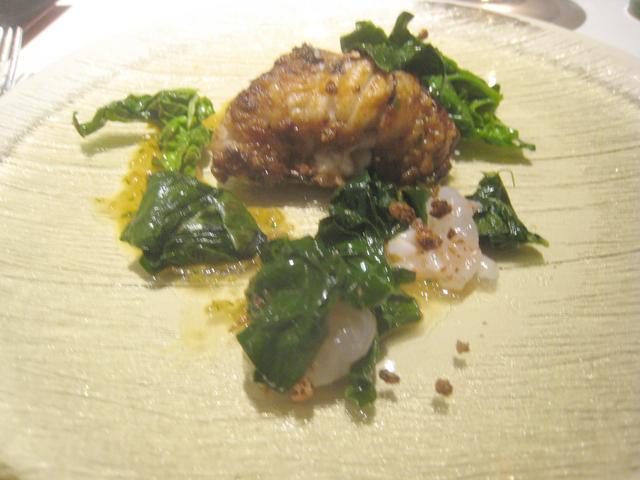 ・真鱈白子のポワレ、菜花 サバイヨンソース