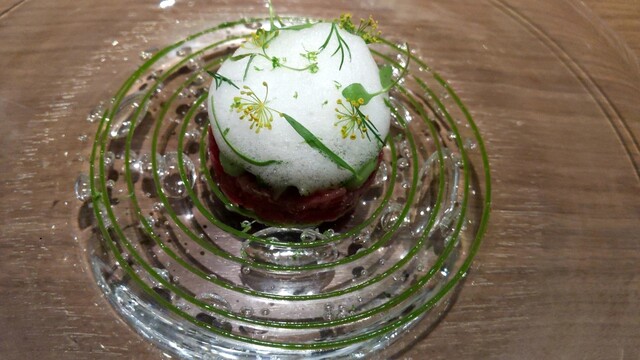 ピュレはキクイモ。フレッシュな物とは違い、熟成感がある。シェフはシーズン終わり