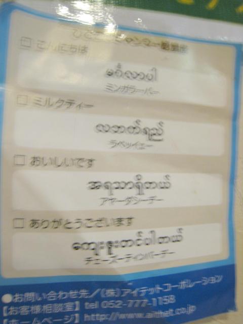 いて、ミャンマー語のサブメニューの方に載っている。写真では柔らかそうだったの