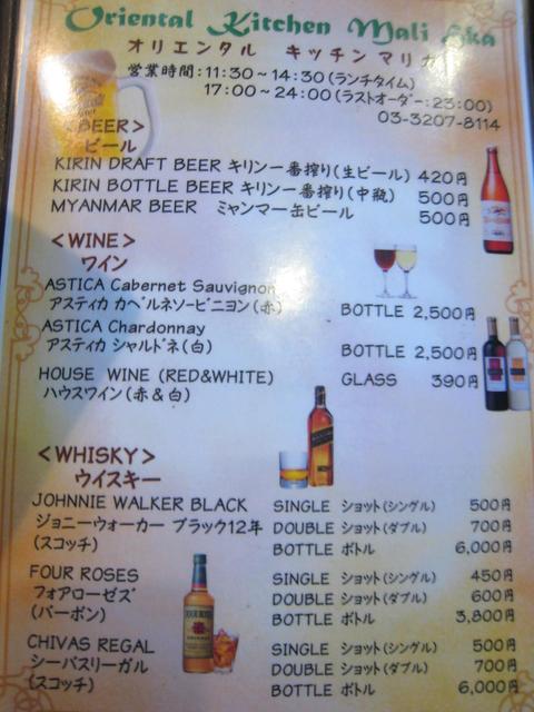 ドリンクメニュー 14/08 ※この他に壁にカクテルメニューあり
