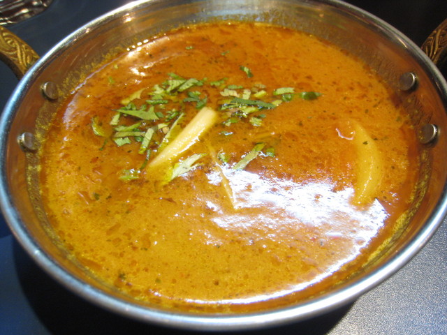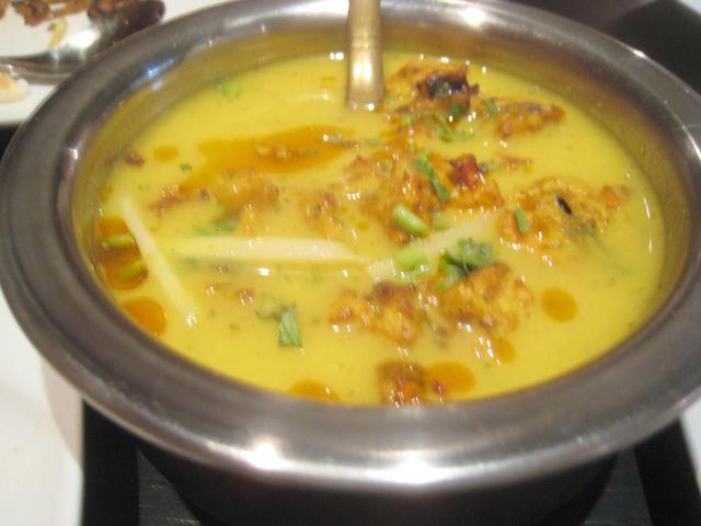 パコラ入り、ヨーグルトベースのカレー。かなり酸味があって、味は発酵野菜系の