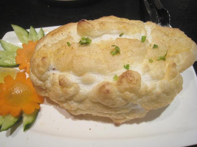 と記憶していたが、確かにこれは驚く。衣?いや、チキンにメレンゲを乗せて焼いて