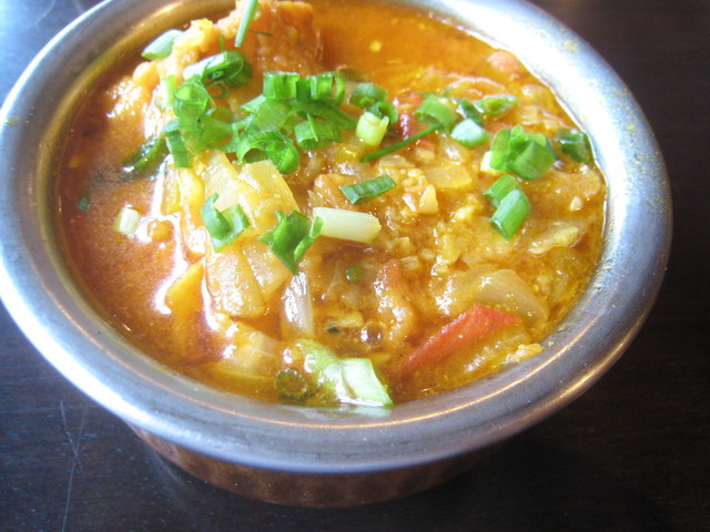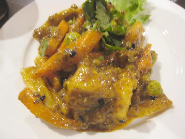 パウーワ…消去法で行くと、右上の小皿がそうなのだろう。カレーかと思ったが、意外と