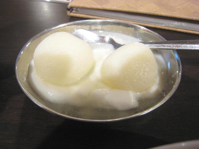 思っていたのだが、これは白いグラブ・ジャムンこと、ラスマライか。冷やしてあり、
