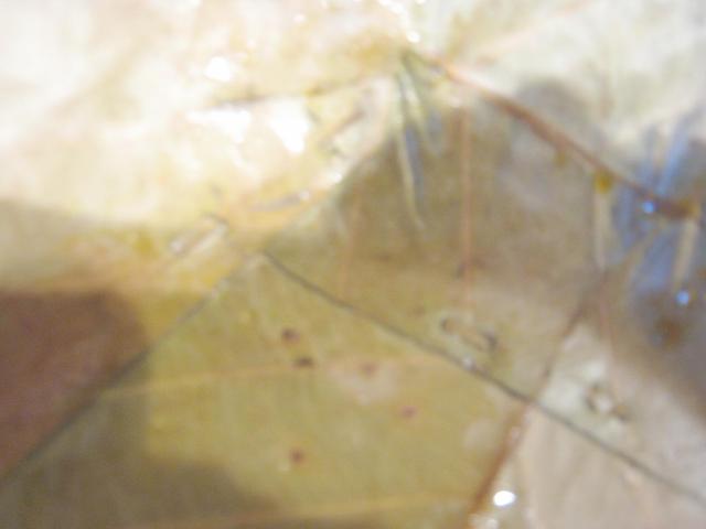 見えてくると、葉と葉をつなぎ合わせる部分は茎か葉脈を使った釘で留めてあった。
