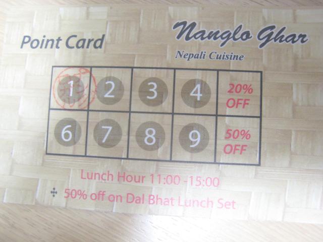 新たにポイントカードが導入されていた。ランチ・ダルバート50%OFFと書いてあるが、