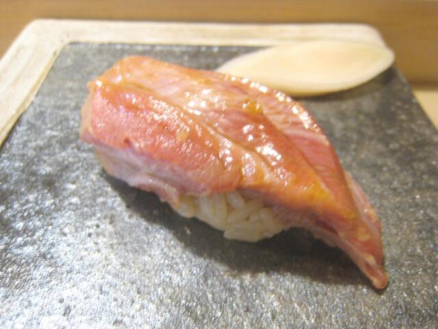 なんだこりゃ。脂たっぷりでとろける。金目鯛かも。