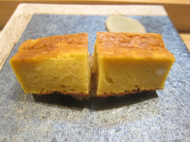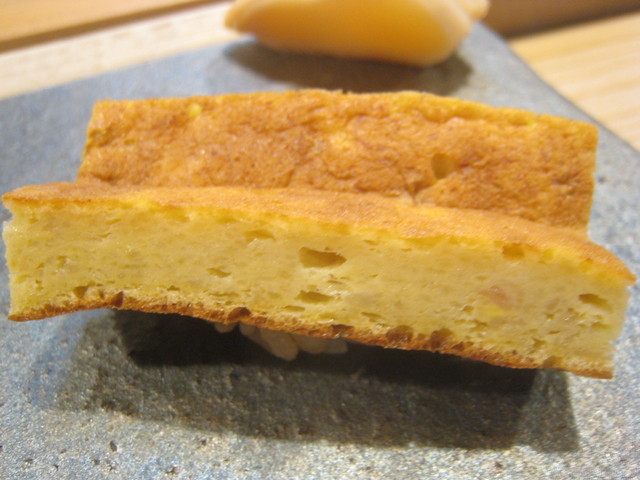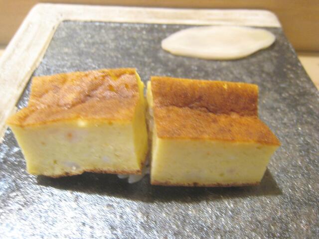 甘い。玉子焼きだけかと思ったら、下に申し訳程度にシャリも。エビと山芋?を混ぜて