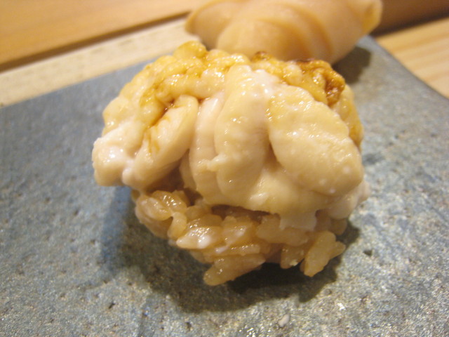 北海道産。これはシャリもろとも冷やしてある(ネタごとに、結構温度が変わっていた)。