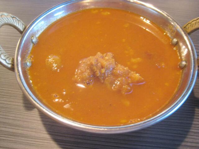 小鉢で具なしマトンカレーが付いてきた。具なし…とは言っても、たっぷりマトンも