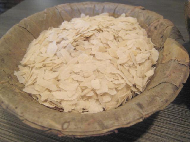 表面は目玉焼きのカリカリ部分の味。中は柔らかい。バラの原料は原料はヒヨコ豆の