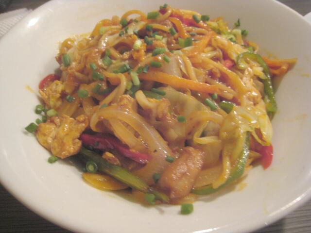 かなりボリュームがある。優しい味付け。やや甘い。チャウミンは他にヴェジ、チキン、