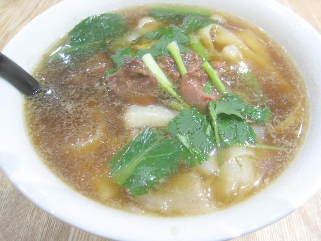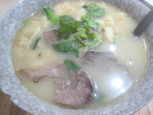スープはもつとかの羊雑湯だと思うが、コショウで結構辛い。熱々な上に餅?はいまいち