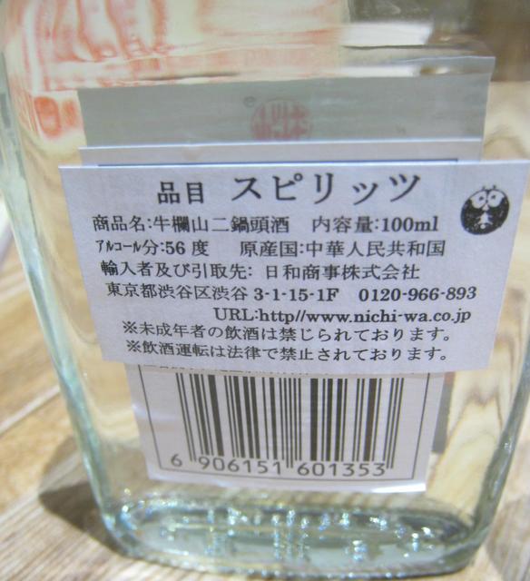 しまったらしい(T_T)。最近は中国の若者も白酒を飲まないらしいし。こんな事なら