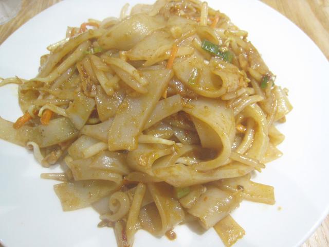 薄い酢味噌?味+ピリ辛。加熱された凉皮はやわやわになっているが、もやしの