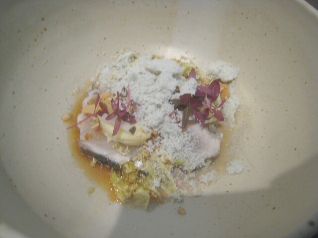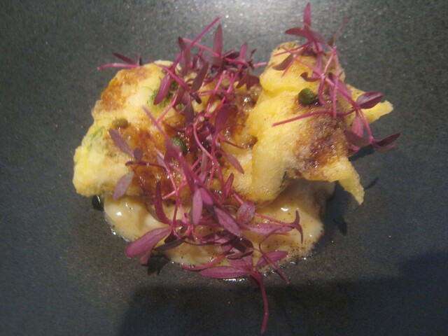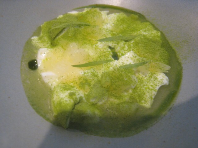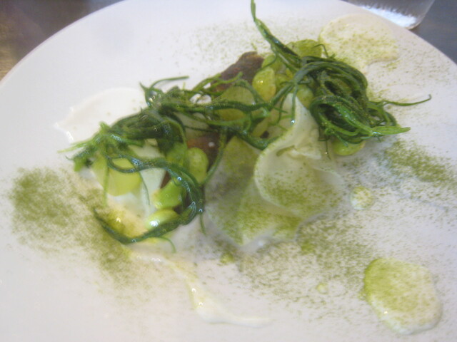 前にも登場した発酵ジャガイモとケールパウダーをかけて。旨い。モツながら上品な
