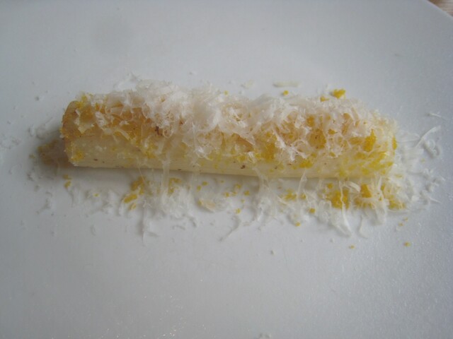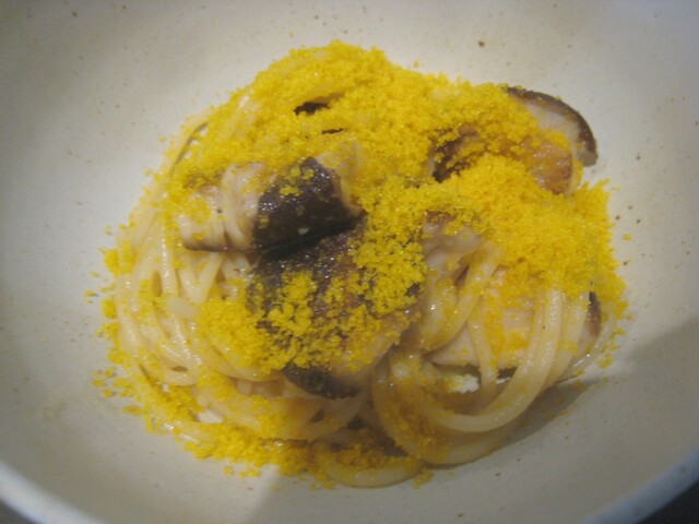 太くてテンション上がる。からすみとペコリーノチーズをかけて。バーミキュラーを