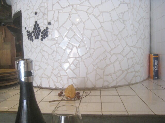 に入店。カウンターへ。目の前にピザ窯がある。WOODYで、白と焦げ茶でまとめられた