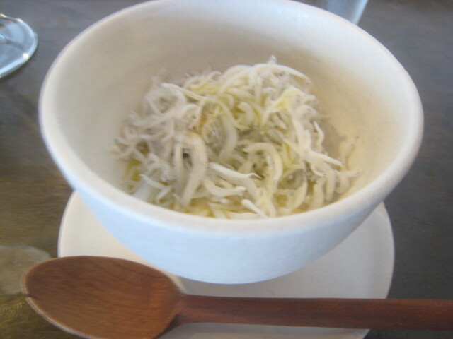 シチリア製オリーヴオイルとケーパーで。しらすは山利商店。GRIS(現SIO)で食べた