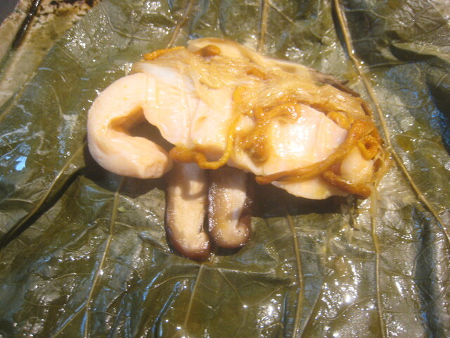 やはり湧水のある富士山麓。朴葉蒸しだが身は結構濃厚。生姜も感じたが、黄色いのは