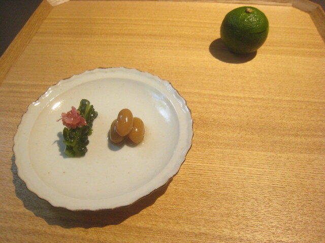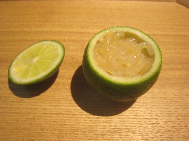 最初は付け合わせなのかと思ったら、これもれっきとした一メニュー。スダチのクラゲ