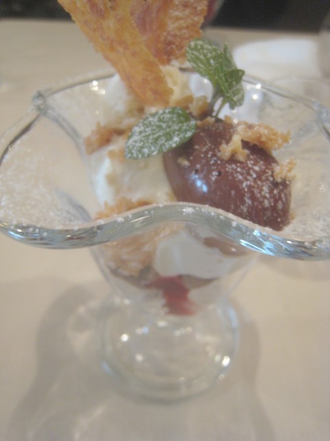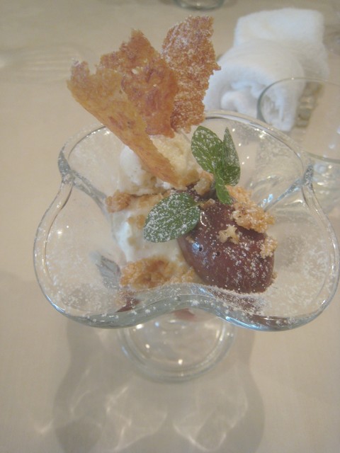 デセール(リンゴキャラメリゼとヴァン・ジョーヌのアイス、パフェ仕立て)