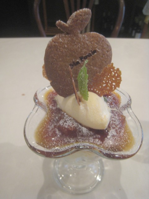 ・デセール(リンゴキャラメリゼとヴァン・ジョーヌのアイス、パフェ仕立て)