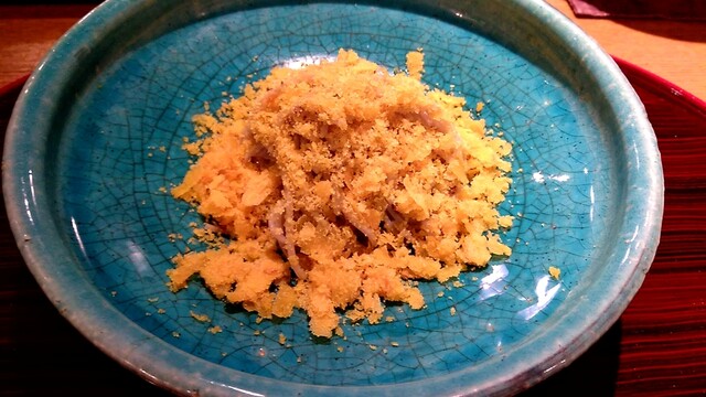 見ていると何かとあえていたが、食べてみると炒った蕎麦の実と判った(すっかり忘れていたが以前のレビューと変わらない)。そしてこれでもかというぐらいにからすみをかける。まあ間違いなくトップクラスのからすみ蕎麦でしょう。