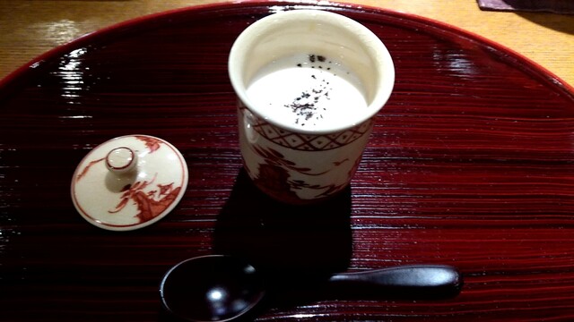 白味噌。辛子を溶いて。白甘鯛が香煎揚げ+何かでもちっとした食感だったのだが、後で訊いたら水分で餅に戻るとのこと。なるほど。