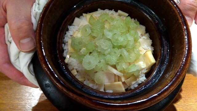 カウンターに二人いたため(?)、二種類提供。新筍は1月のみというのを知った。しかし食事もそれ程ピンと来ず。某所の神懸かったご飯をずっと食べていたので駄目出しが厳しくなる。